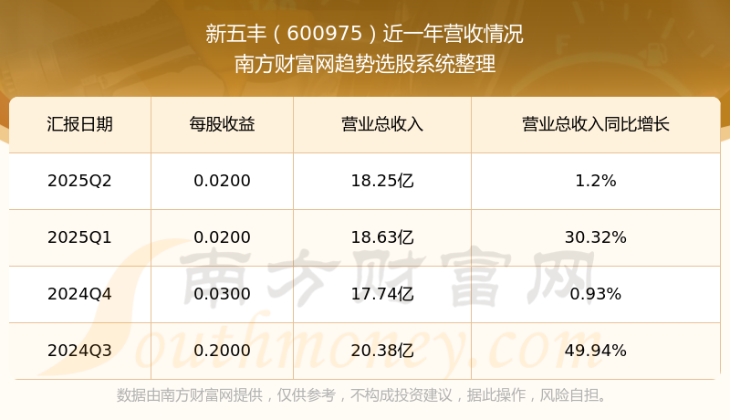 新五丰2025年第二季度显示,公司主营收入18.25亿元,同比1.2%;归母净利润2561.38万元,同比248.69%;扣非净利润2518.06万元,同比324.99%;
