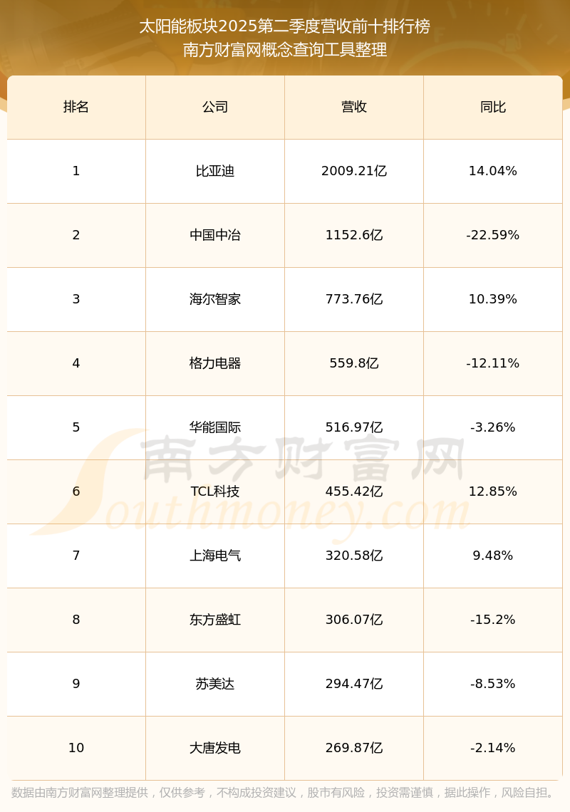 按照南方财富网概念查询工具统计,该股所属板块为太阳能板块,该板块共有460只股票,钱江生化2025第二季度营收在该板块中排名为第320名,该板块2025第二季度营收排名前十的股票如下表: