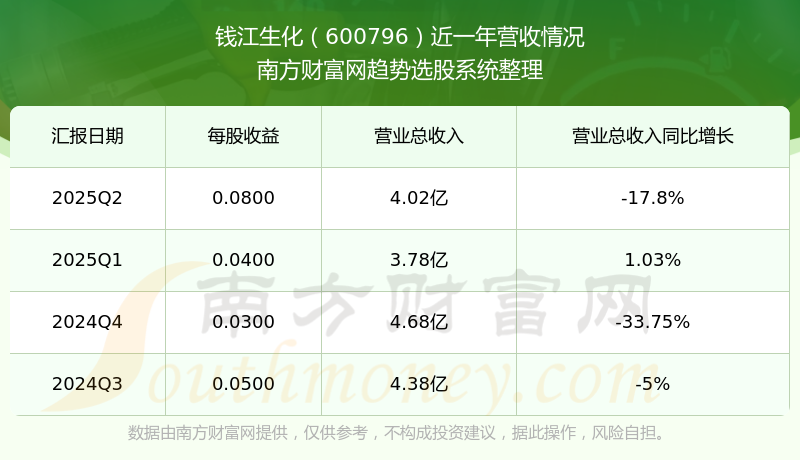 钱江生化股票近一年营收情况如下表: