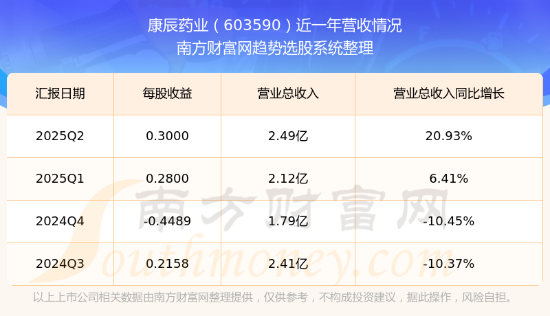 A股上市公司康辰药业(代码:603590)发布2025年第二季度财报,公司2025年第二季度归属于上市公司股东的净利润为4654.87万元,净利润同比增长23.97%,环比增长4.61%。