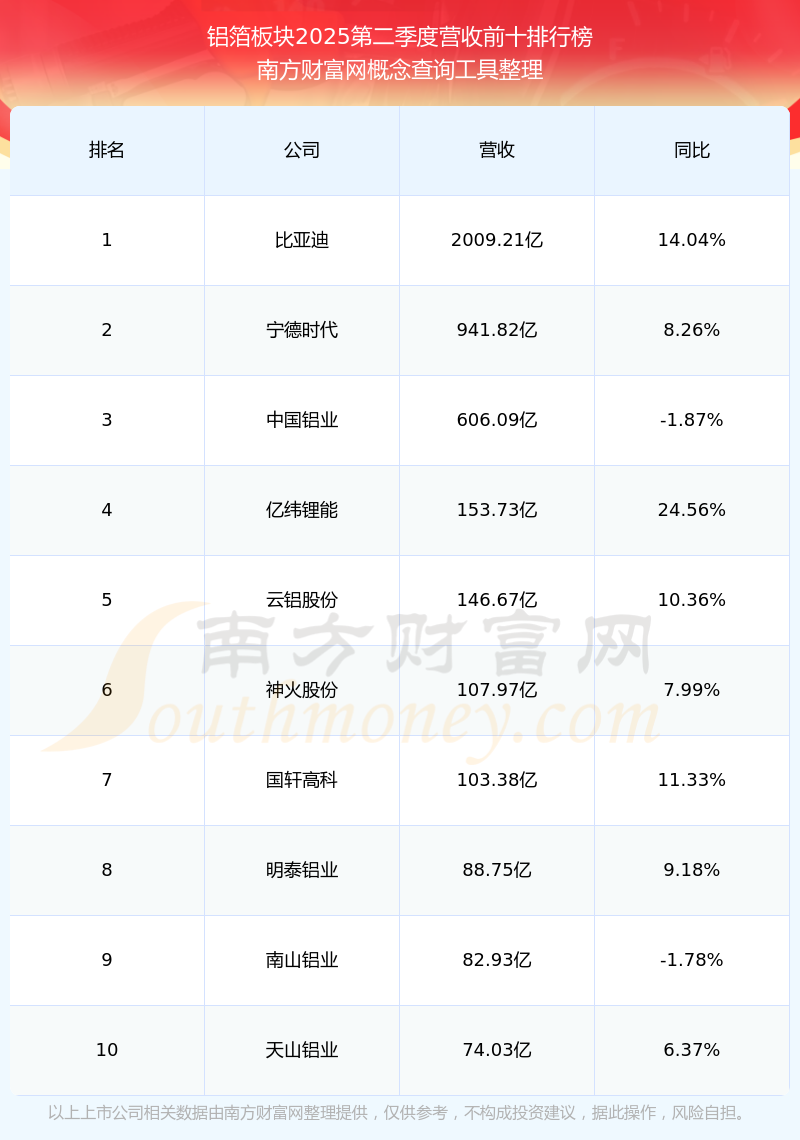 按照南方财富网概念查询工具统计,该股所属板块为铝箔板块,该板块共有31只股票,鼎胜新材2025第二季度营收在该板块中排名为第12名,该板块2025第二季度营收排名前十的股票如下表: