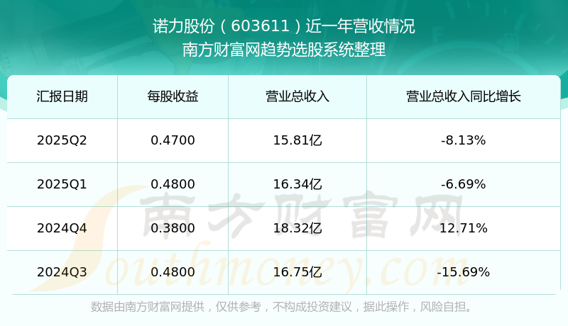 A股上市公司诺力股份(代码:603611)发布2025年第二季度财报,公司2025年第二季度归属于上市公司股东的净利润为1.23亿元,净利润同比增长-1.43%,环比增长0.36%。