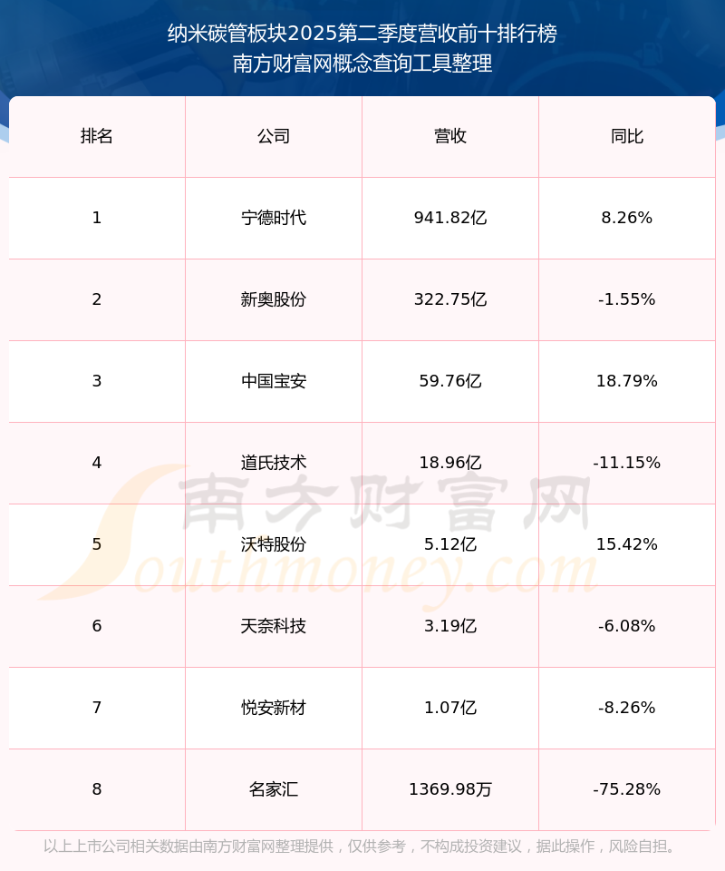 按照南方财富网概念查询工具统计,该股所属板块为纳米碳管板块,该板块共有8只股票,天奈科技2025第二季度营收在该板块中排名为第6名,该板块2025第二季度营收排名前十的股票如下表:
