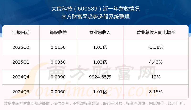 大位科技股票近一年营收情况如下表: