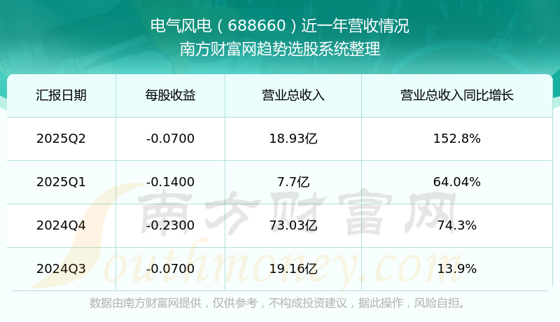 电气风电2025年第二季度显示,公司主营收入18.93亿元,同比152.8%;归母净利润-9158.34万元,同比47.63%;扣非净利润-9732.58万元,同比45.04%。