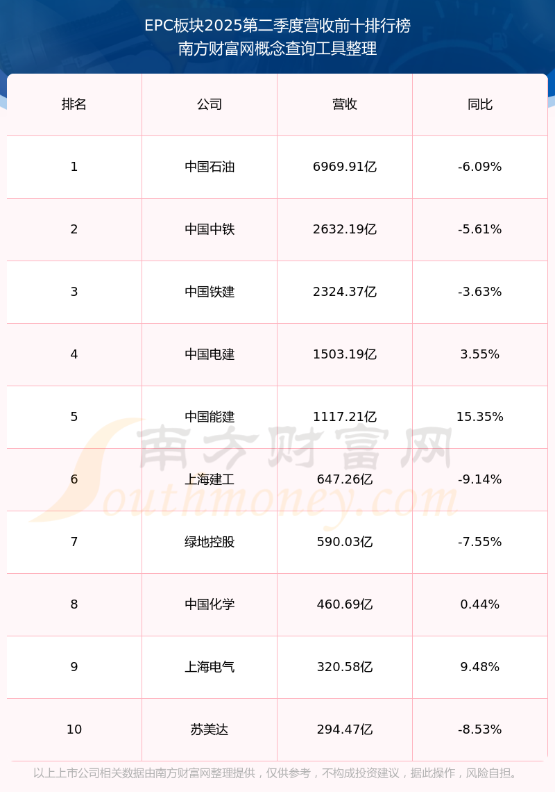 按照南方财富网概念查询工具统计,该股所属板块为EPC板块,该板块共有151只股票,伟明环保2025第二季度营收在该板块中排名为第151名,该板块2025第二季度营收排名前十的股票如下表: