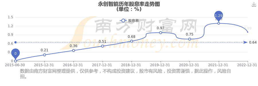 近年永创智能年度股息率走势如下图: