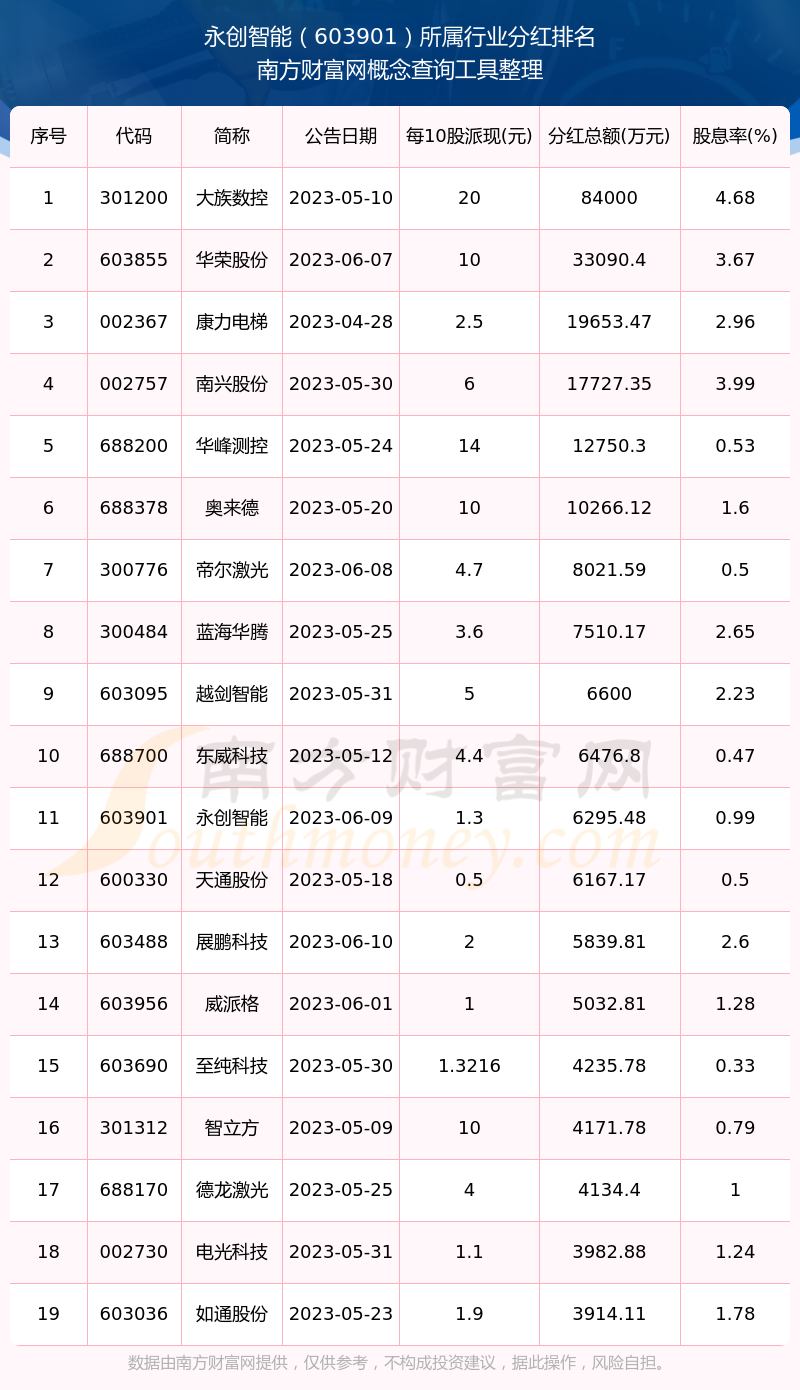 二、永创智能603901行业分红排名