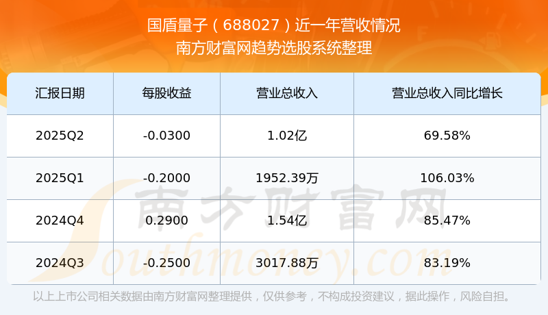 国盾量子股票近一年营收情况如下表: