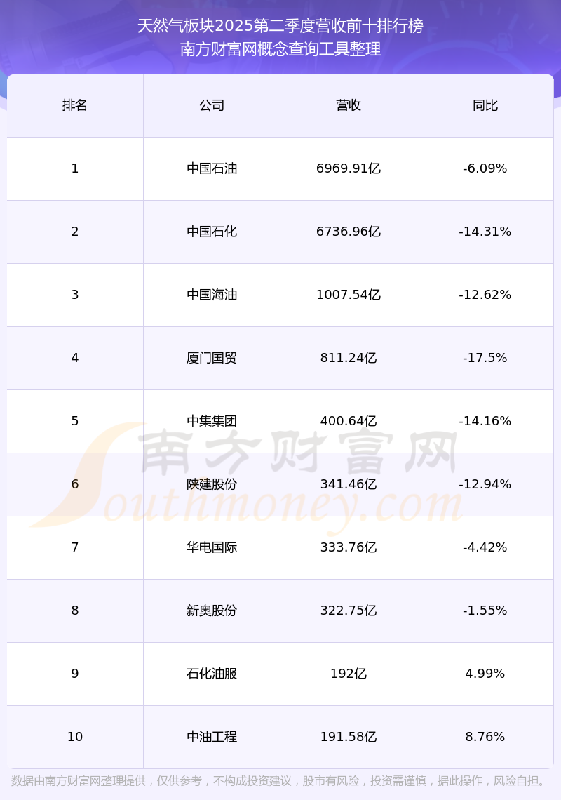 按照南方财富网概念查询工具统计,该股所属板块为天然气板块,该板块共有157只股票,百川能源2025第二季度营收在该板块中排名为第80名,该板块2025第二季度营收排名前十的股票如下表: