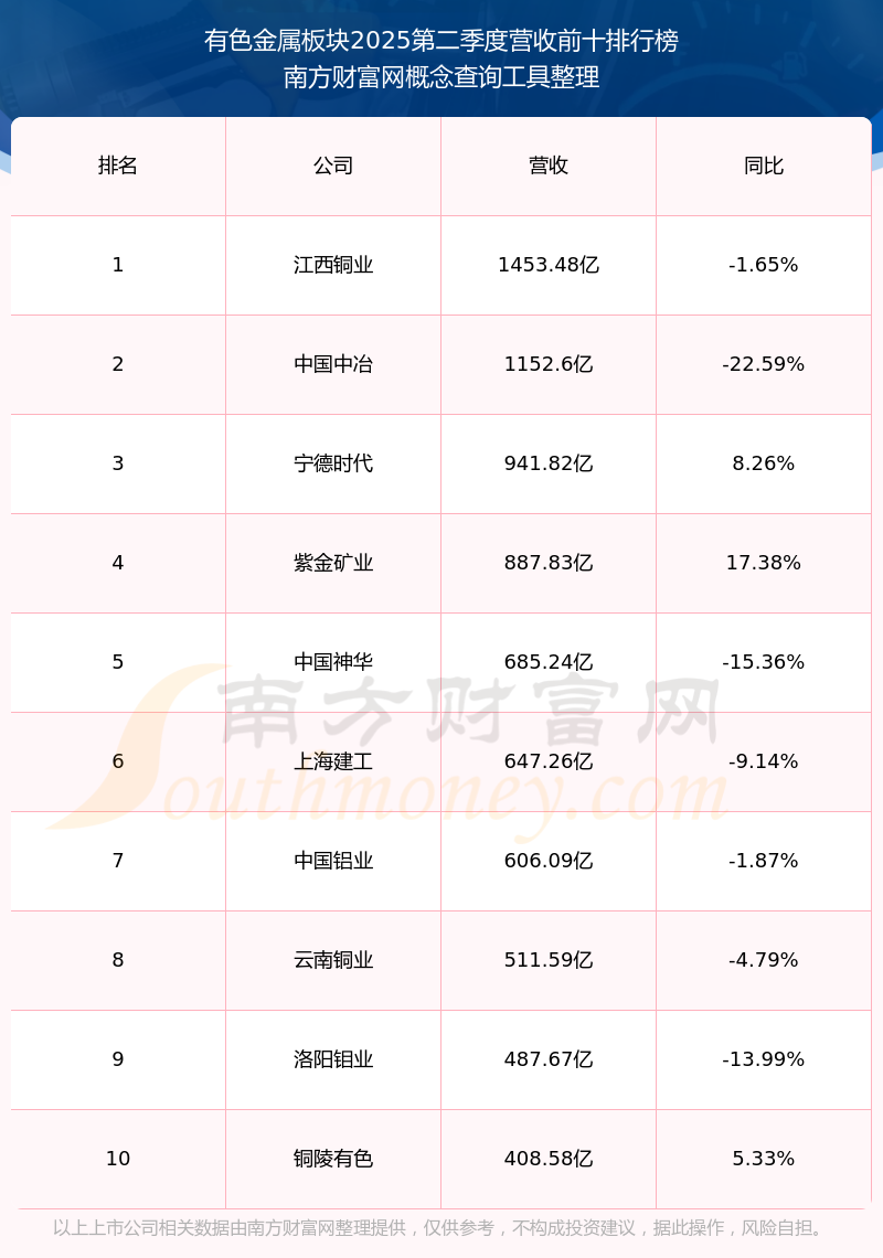 按照南方财富网概念查询工具统计,该股所属板块为有色金属板块,该板块共有289只股票,鹏欣资源2025第二季度营收在该板块中排名为第171名,该板块2025第二季度营收排名前十的股票如下表: