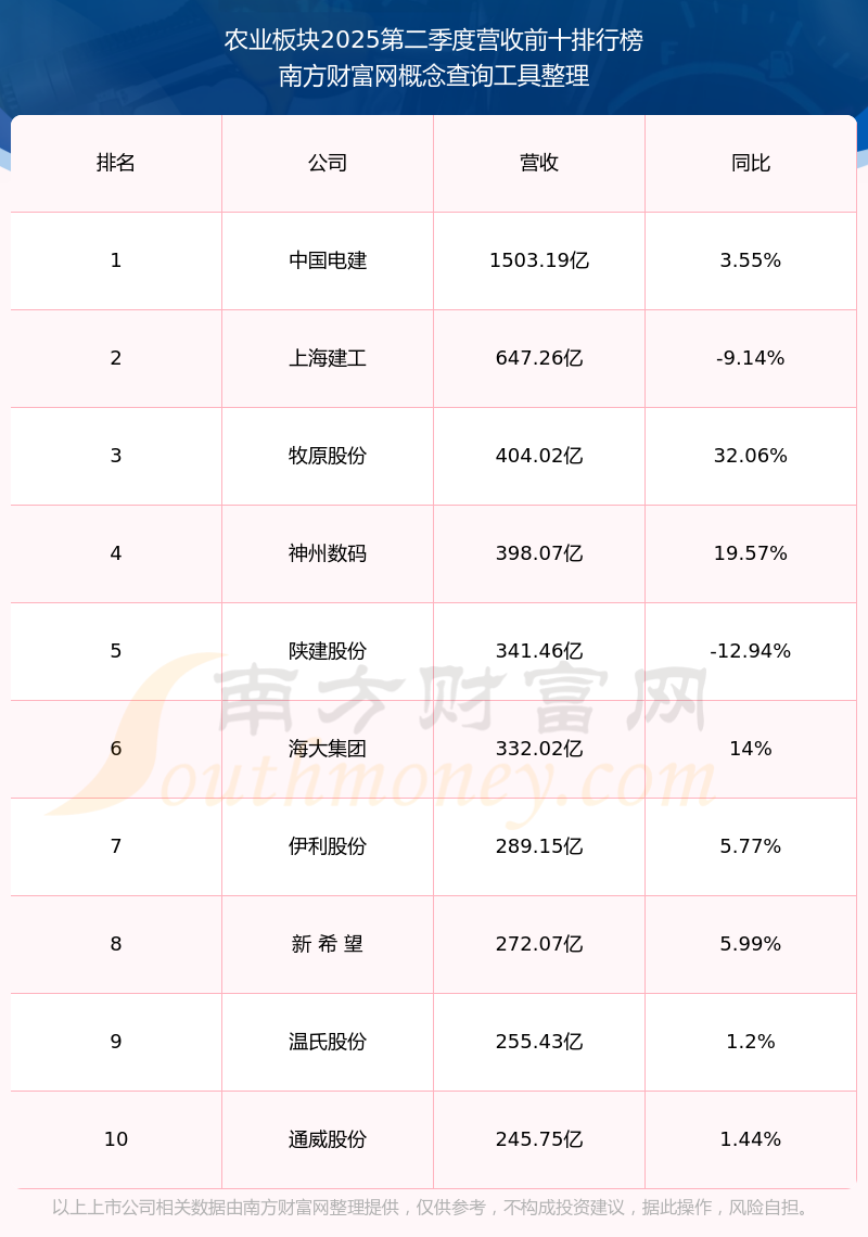 按照南方财富网概念查询工具统计,该股所属板块为农业板块,该板块共有230只股票,北大荒2025第二季度营收在该板块中排名为第61名,该板块2025第二季度营收排名前十的股票如下表: