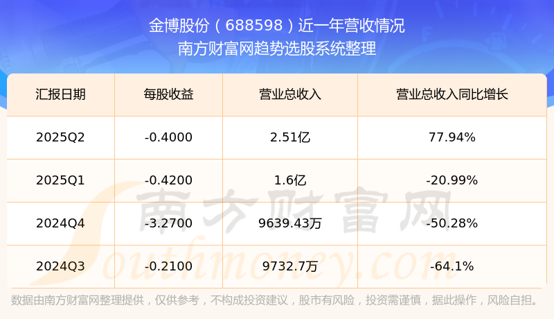财报显示,2025年第二季度金博股份营收2.51亿元,同比增长77.94%,净利润-8230.25万元,同比增长-69.77%。