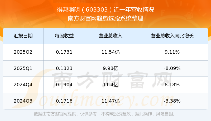 得邦照明股票近一年营收情况如下表: