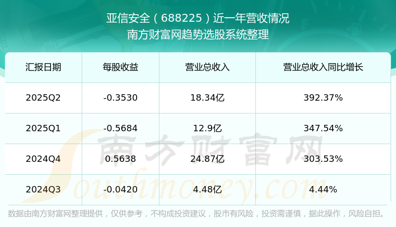 2025年第二季度,亚信安全营收同比392.37%,净利润同比-178.77%。