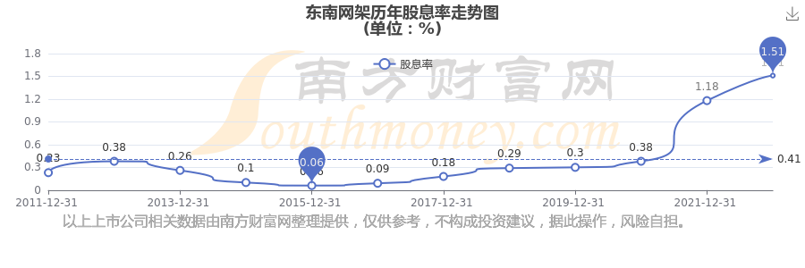 近年东南网架年度股息率走势如下图: