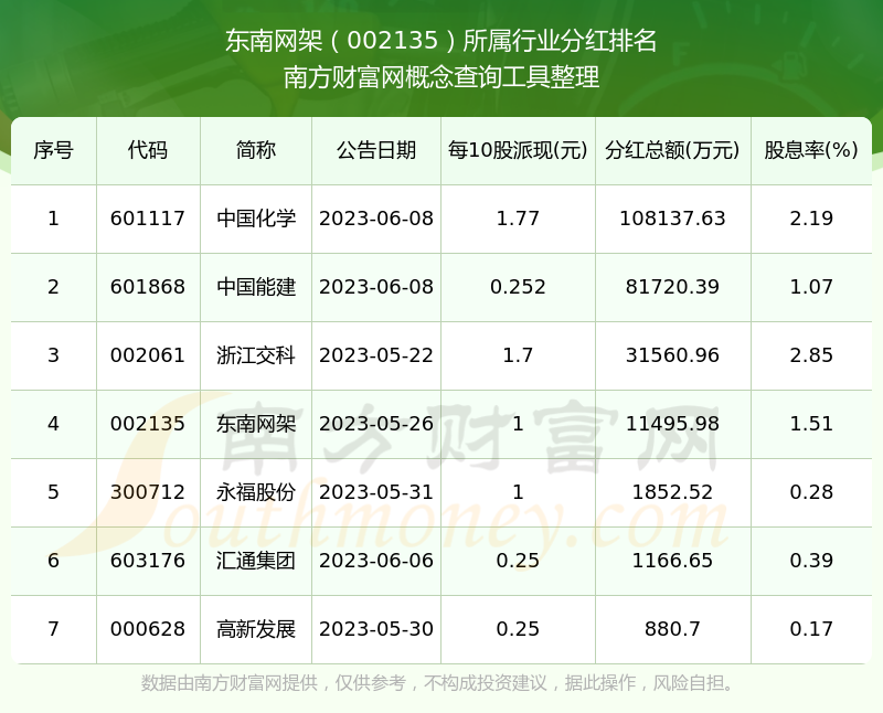二、东南网架002135行业分红排名
