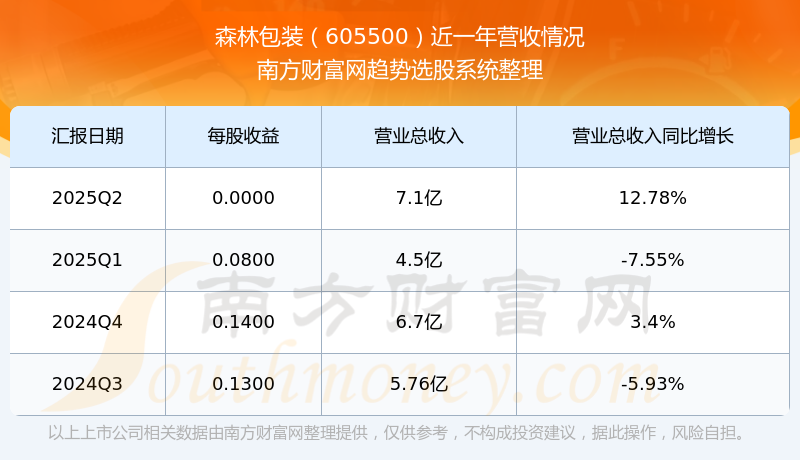 森林包装股票近一年营收情况如下表: