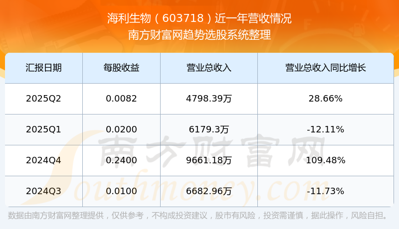 海利生物股票近一年营收情况如下表: