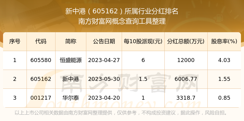 按照南方财富网趋势选股系统统计,新中港所属行业为蒸汽行业,蒸汽行业分红排名情况如下表: