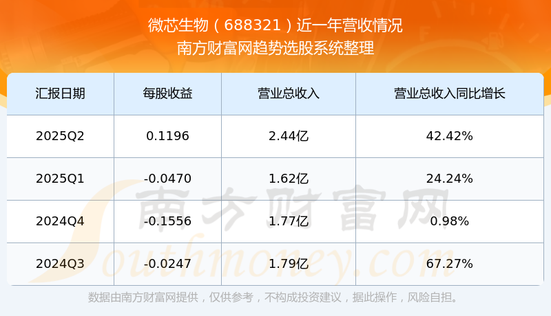 在2025年第二季度,微芯生物的业绩表现,主营业务收入达到2.44亿元,实现了42.42%的同比增长率。同时,公司归母净利润录得4874.69万元,同比增长314.73%。