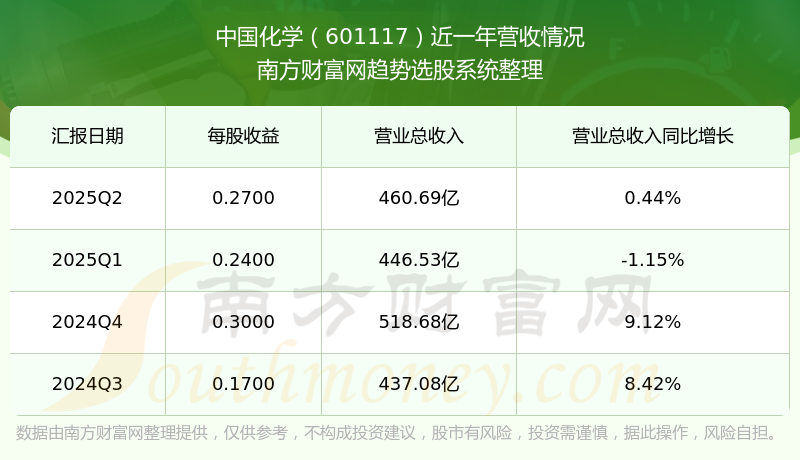 中国化学股票近一年营收情况如下表: