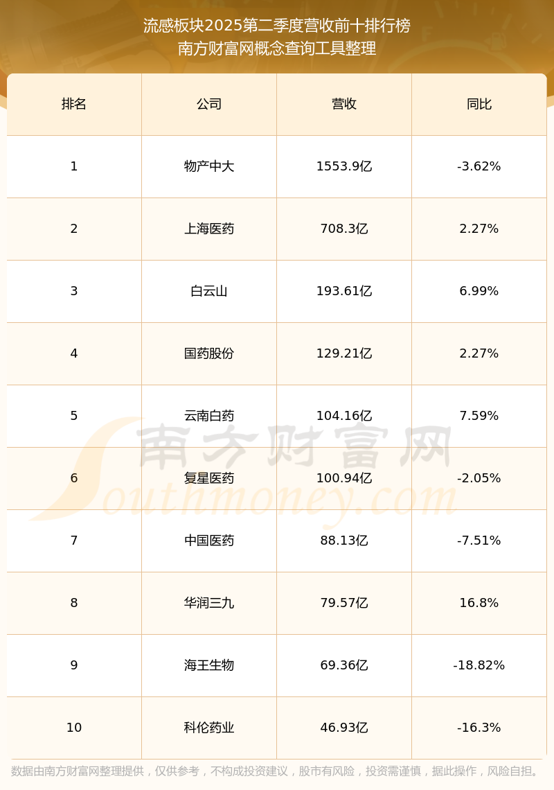 按照南方财富网概念查询工具统计,该股所属板块为流感板块,该板块共有144只股票,同仁堂2025第二季度营收在该板块中排名为第12名,该板块2025第二季度营收排名前十的股票如下表: