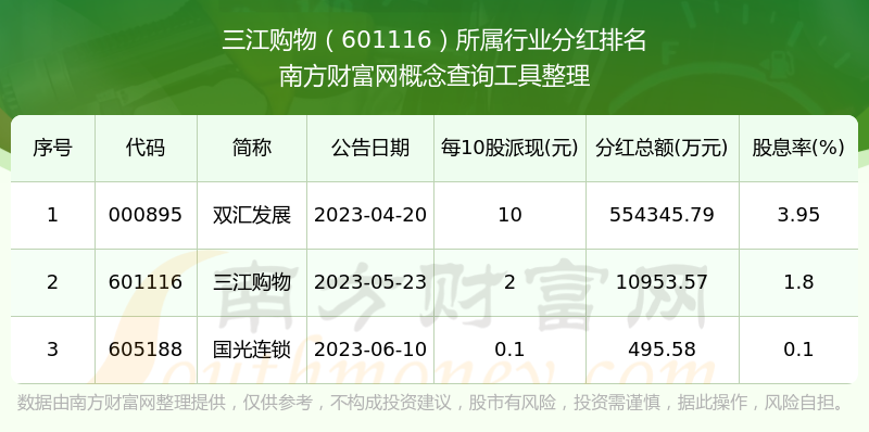 二、三江购物601116行业分红排名