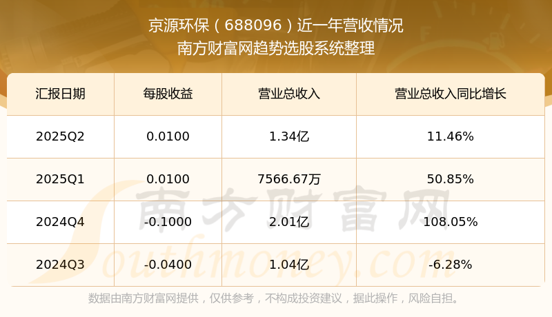 京源环保(688096)披露2025年第二季度报告,报告期实现营收1.34亿元,同比11.46%;归母净利润37.1万元,同比-82.68%;扣非净利润-11.97万元,同比-179.43%;基本每股收益0.01元。
