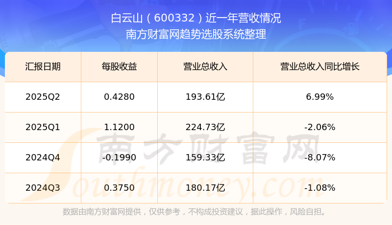 白云山2025年第二季度财报显示,公司主营收入193.61亿元,同比6.99%;归母净利润6.95亿元,同比17.48%;扣非净利润5.31亿元,同比4.68%;