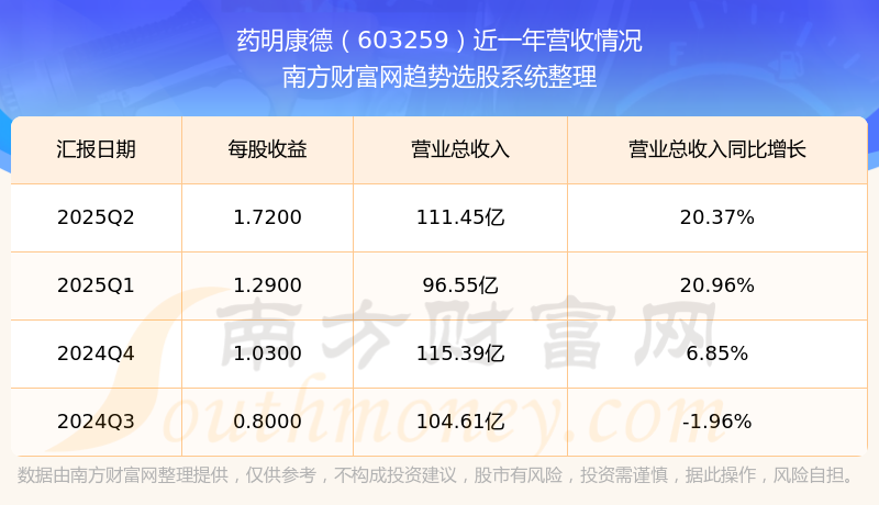在2025年第二季度,药明康德的业绩表现,主营业务收入达到111.45亿元,实现了20.37%的同比增长率。同时,公司归母净利润录得48.89亿元,同比增长112.78%。