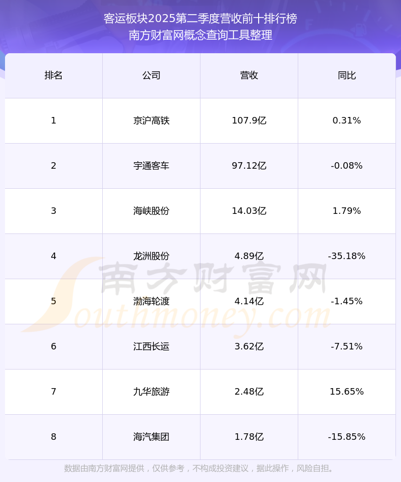 按照南方财富网概念查询工具统计,该股所属板块为客运板块,该板块共有8只股票,天宸股份2025第二季度营收在该板块中排名为第8名,该板块2025第二季度营收排名前十的股票如下表: