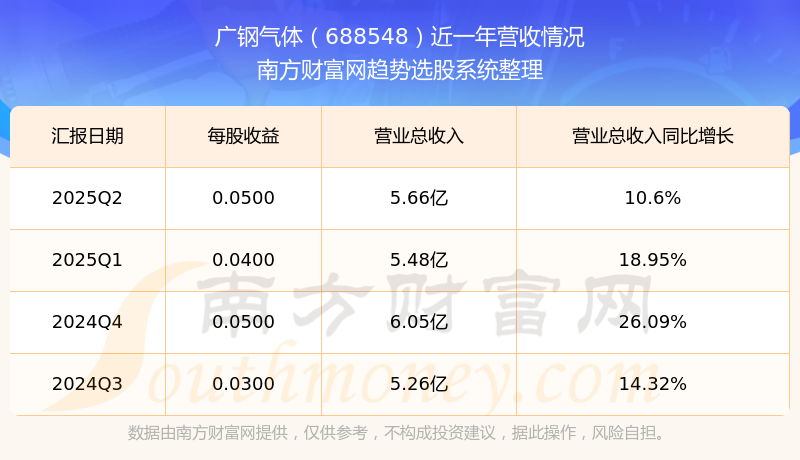 广钢气体2025年第二季度公司实现营业收入5.66亿元,同比10.6%;归母净利润6108.76万元,同比-10.98%。