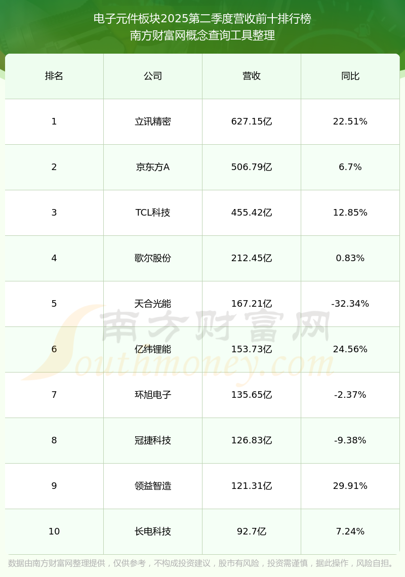 按照南方财富网概念查询工具统计,该股所属板块为电子元件板块,该板块共有354只股票,杉杉股份2025第二季度营收在该板块中排名为第27名,该板块2025第二季度营收排名前十的股票如下表: