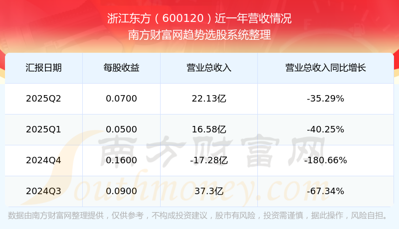浙江东方2025年第二季度报告显示,公司实现主营业务收入22.13亿元,较去年同期增长-35.29%;归属于母公司股东的净利润为2.46亿元,同比增长145.68%;扣除非经常性损益后的净利润为2.45亿元,同比增长149.9%。