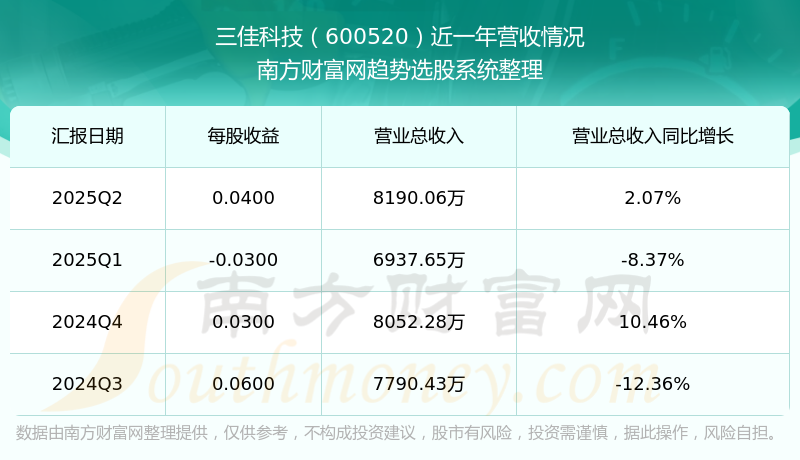 A股上市公司三佳科技(代码:600520)发布2025年第二季度财报,公司2025年第二季度归属于上市公司股东的净利润为619.37万元,净利润同比增长-6.26%,环比增长245.22%。