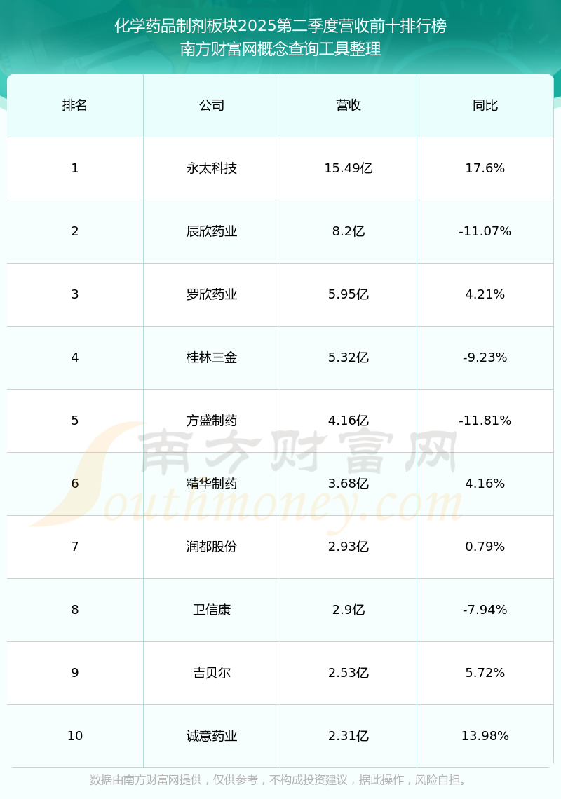 按照南方财富网概念查询工具统计,该股所属板块为化学药品制剂板块,该板块共有15只股票,南新制药2025第二季度营收在该板块中排名为第15名,该板块2025第二季度营收排名前十的股票如下表: