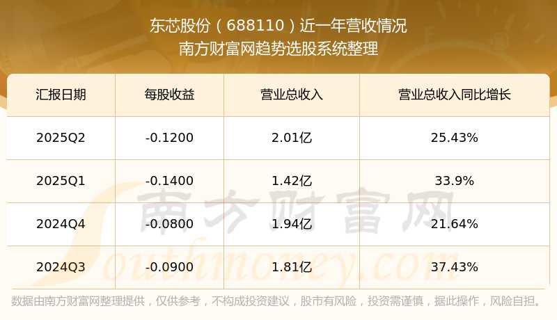 东芯股份股票近一年营收情况如下表: