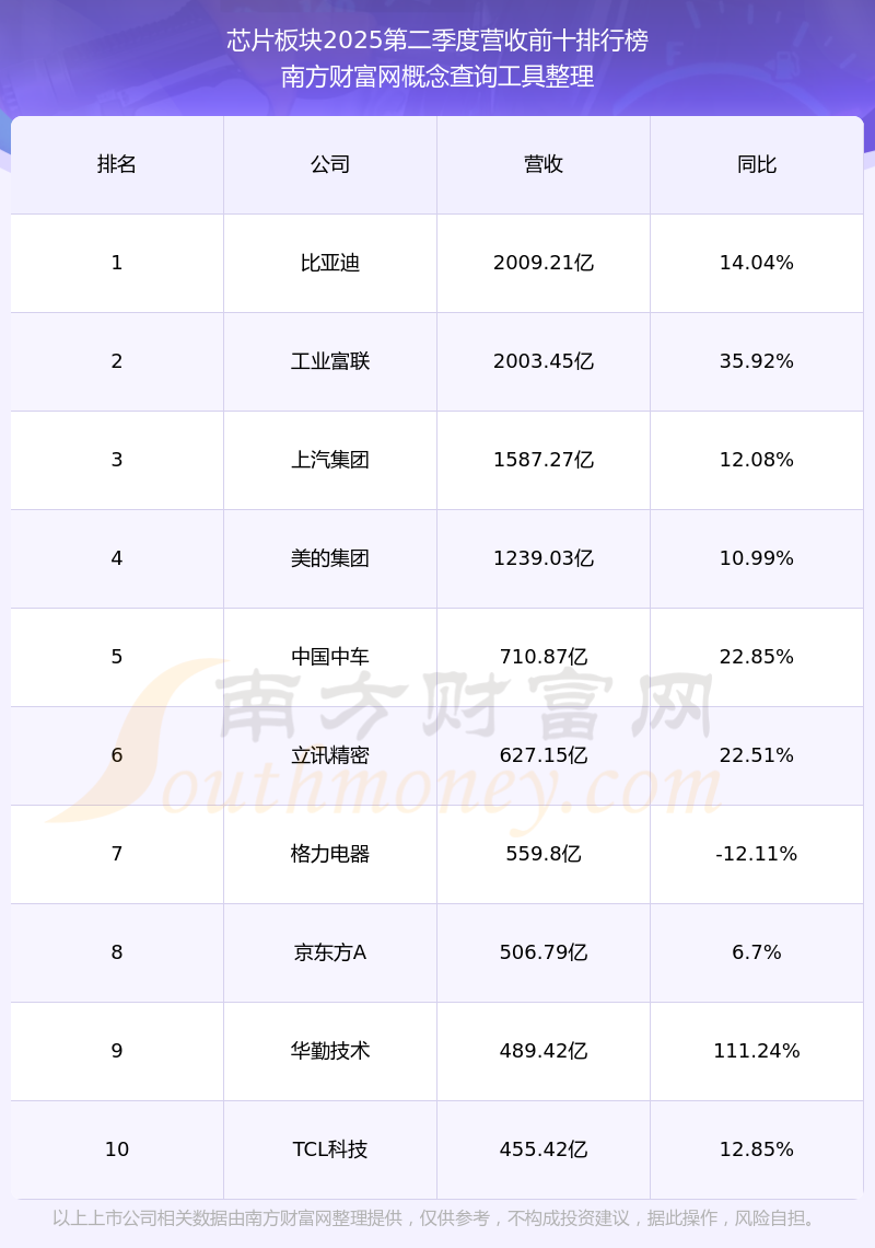 按照南方财富网概念查询工具统计,该股所属板块为芯片板块,该板块共有901只股票,杰华特2025第二季度营收在该板块中排名为第356名,该板块2025第二季度营收排名前十的股票如下表: