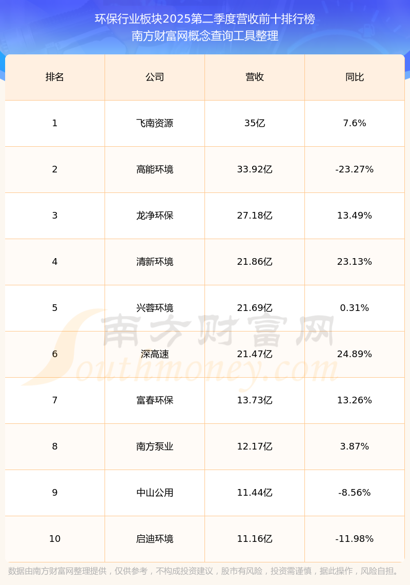 按照南方财富网概念查询工具统计,该股所属板块为环保行业板块,该板块共有53只股票,万德斯2025第二季度营收在该板块中排名为第39名,该板块2025第二季度营收排名前十的股票如下表:
