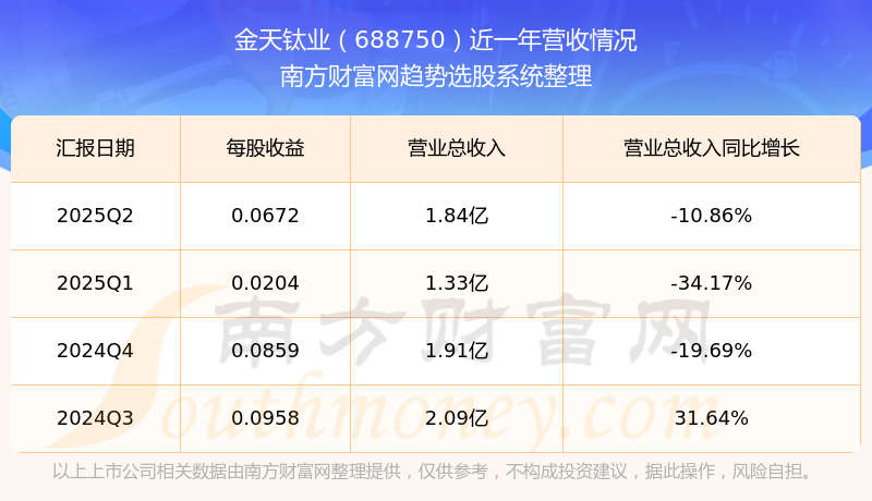 金天钛业股票近一年营收情况如下表: