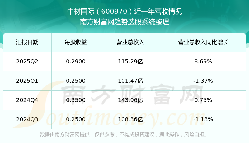 中材国际股票近一年营收情况如下表:
