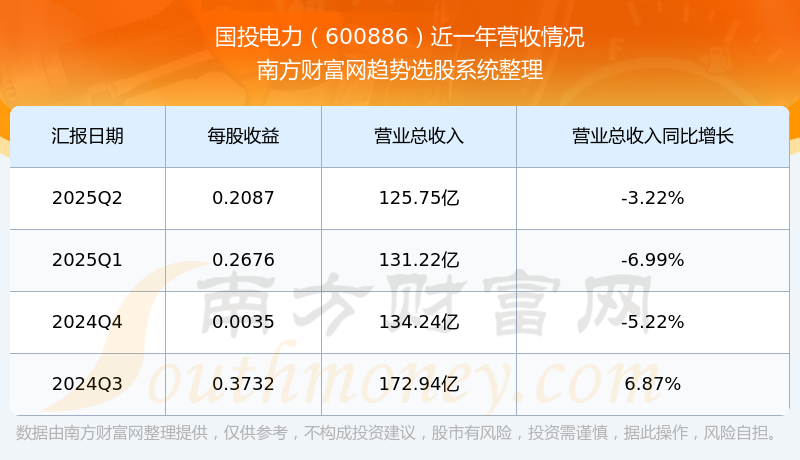 国投电力发布2025年第二季度财报。实现总营收125.75亿元,同比增长-3.22%;扣非净利润同比增长0.75%至17.05亿元。