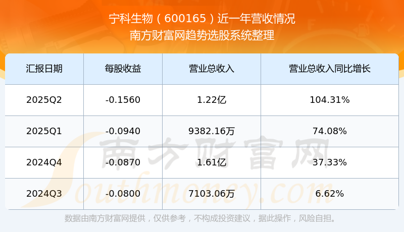 宁科生物股票近一年营收情况如下表: