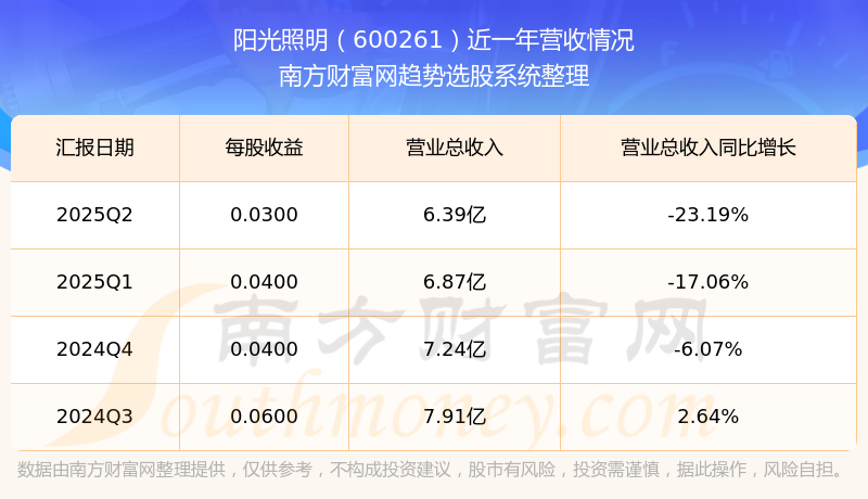 阳光照明股票近一年营收情况如下表: