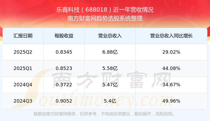乐鑫科技股票近一年营收情况如下表:
