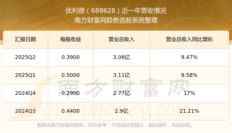 于2025年第二季度,优利德披露了其业绩表现,其中主营业务收入3.06亿元,相较于去年同期9.47%。此外,公司归属于母公司的净利润为4290.25万元,同比增长了-11.92%。在扣除所有非经常性损益后,净利润3944.4万元,同比增长-14.81%。