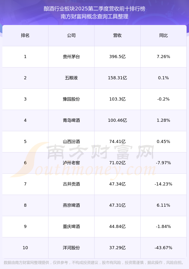 按照南方财富网概念查询工具统计,该股所属板块为酿酒行业板块,该板块共有42只股票,威龙股份2025第二季度营收在该板块中排名为第36名,该板块2025第二季度营收排名前十的股票如下表: