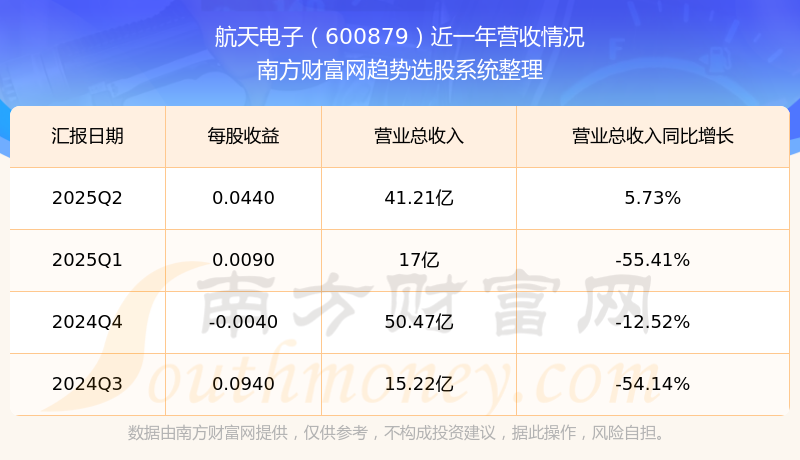 2025年第二季度,航天电子营收同比5.73%,净利润同比35.25%。