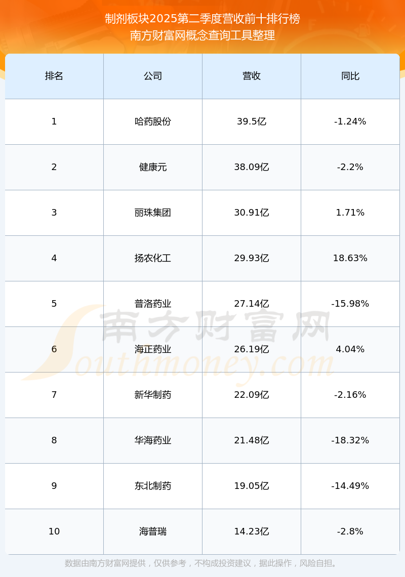 按照南方财富网概念查询工具统计,该股所属板块为制剂板块,该板块共有41只股票,国邦医药2025第二季度营收在该板块中排名为第41名,该板块2025第二季度营收排名前十的股票如下表: